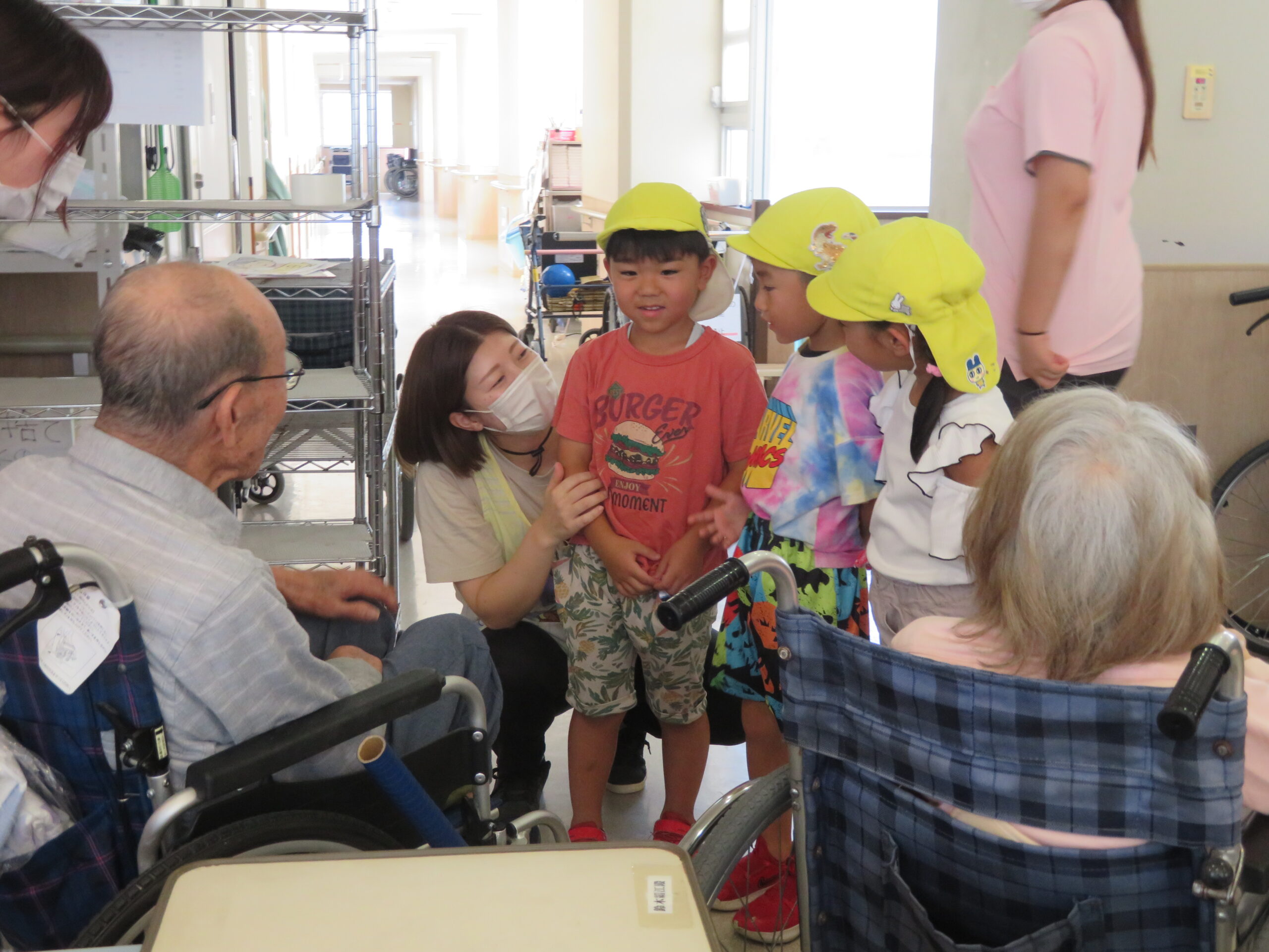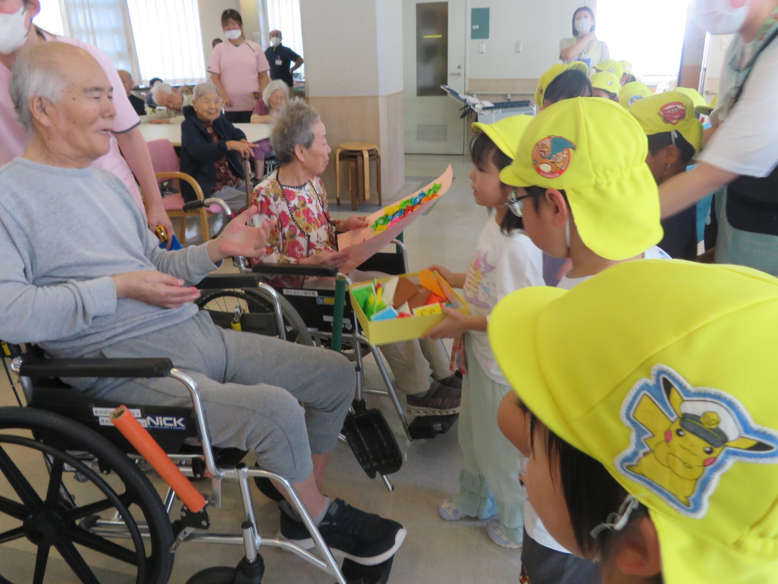 2025年09月25日出来事 エーデルワイスに行ってきました。 先日、そら組さんが関連法人施設である エーデルワイスさんの敬老会に参加してきました。 子どもたちは少し緊張しながらも、 元気いっぱいの歌を披露したり、心を込めて折った 折り紙をおじいちゃん・おばあちゃんにプレゼントしました。 「ありがとう」と声をかけてもらい、嬉しそうなそら組さんでした。 今後も関連法人施設との繋がりを大切にしていきたいとおもいます。
