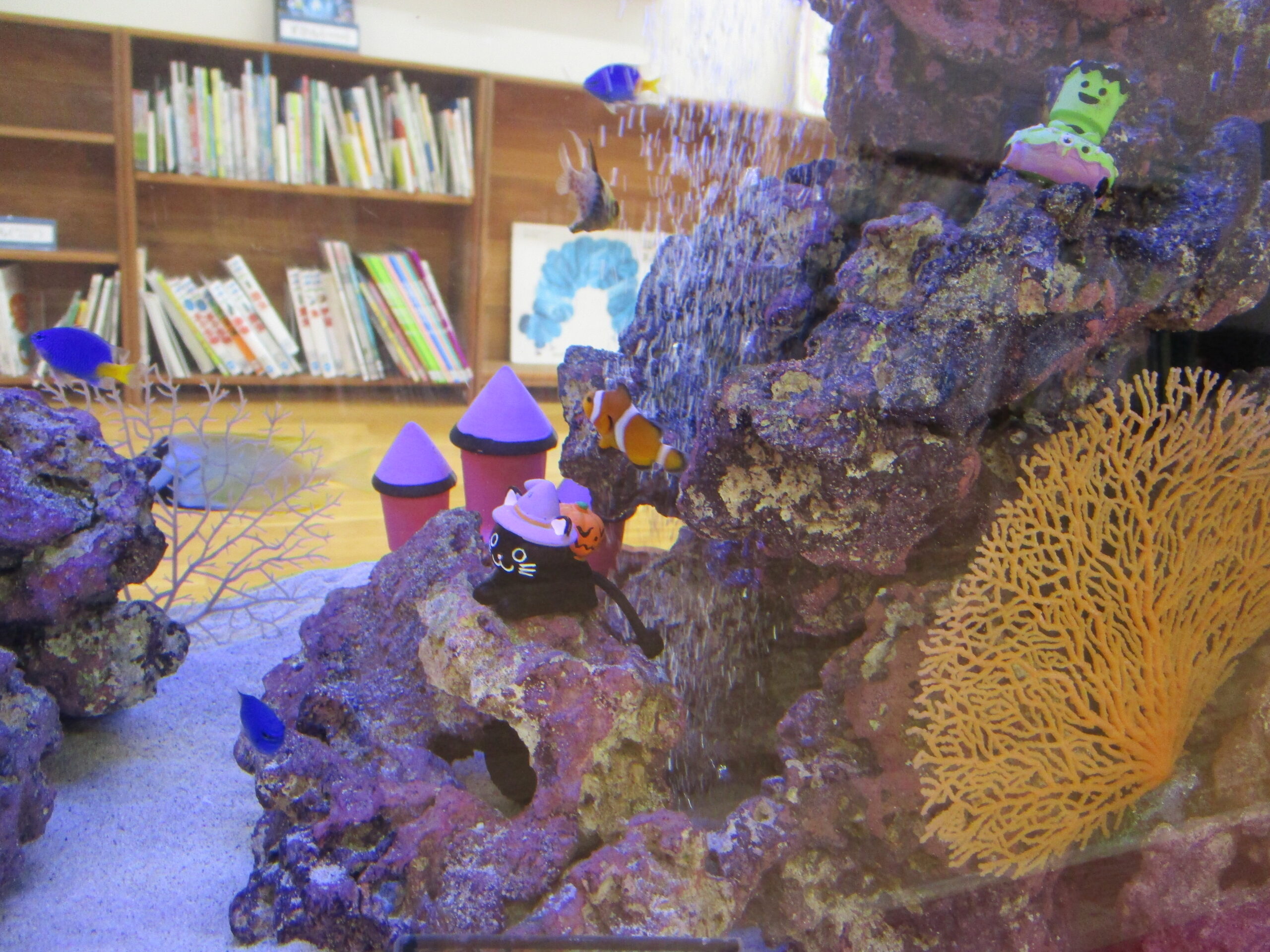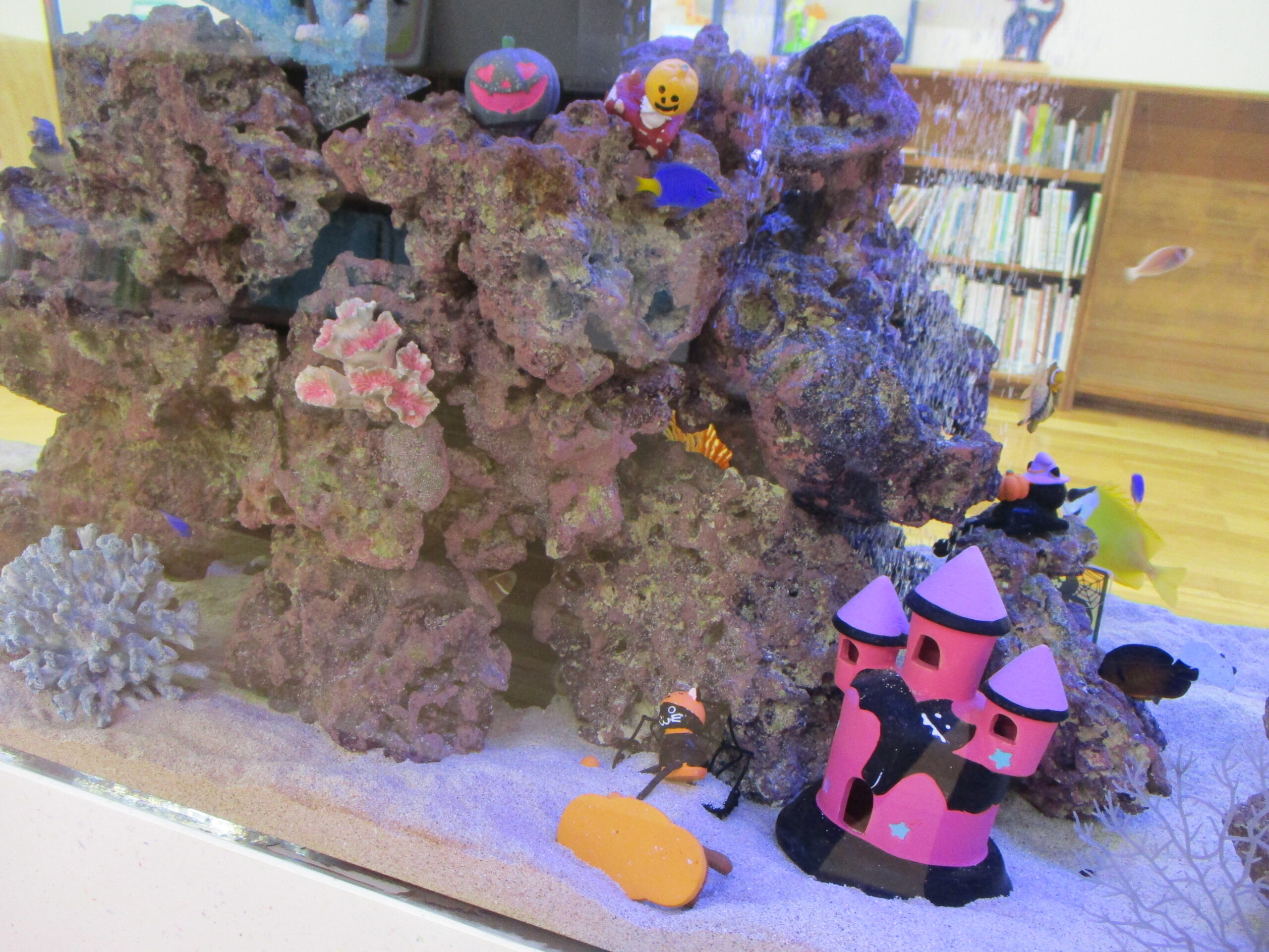 2025年10月03日出来事 園内の水槽がリニューアルしました🐟 お魚たちのお部屋が、ハロウィン仕様に変身しました🎃 「かわいい~」「おばけもいる!」と みんなで水槽をのぞき込んでいましたよ。 これからも季節の変化をみんなで感じていけたらと思います🍂
